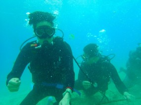 目の前で泳ぐチョウチョウオやルリスズメダイに