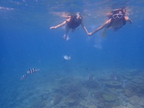 シュノーケルではカメが見れたり色んなクマノミが見れたり、