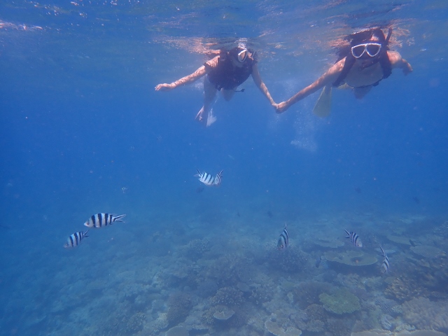 シュノーケルと同じポイントでやるので、ほんとに綺麗な海を見ることができます![]()