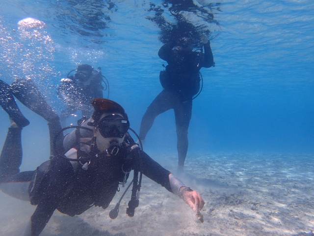 水納島でのダイビングはナマコやヒトデ、ハリセンボンなどに触れ合えて