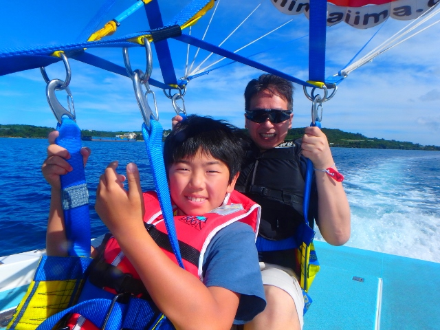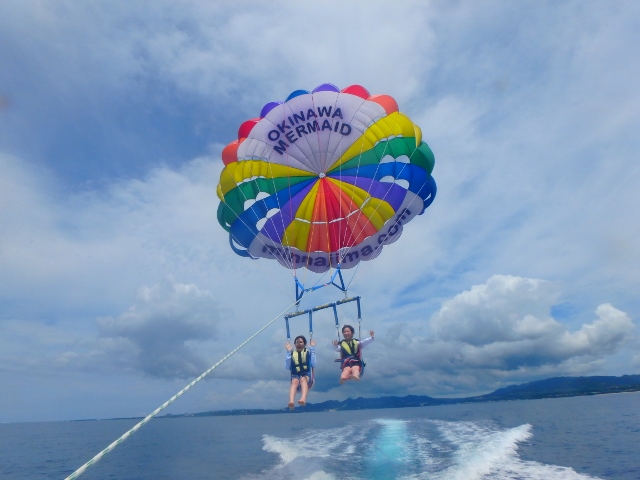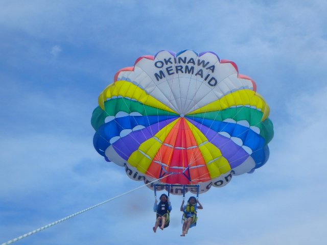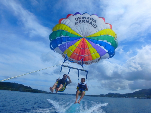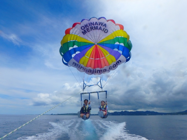 綺麗な沖縄の海での空中散歩は