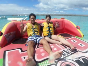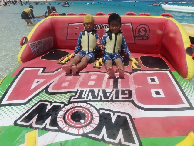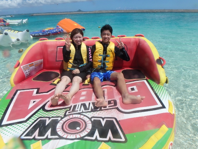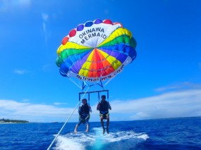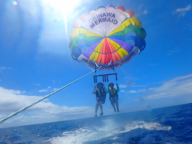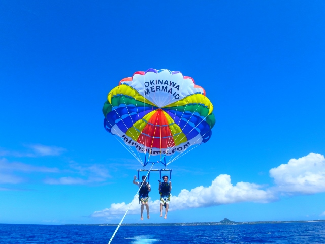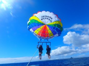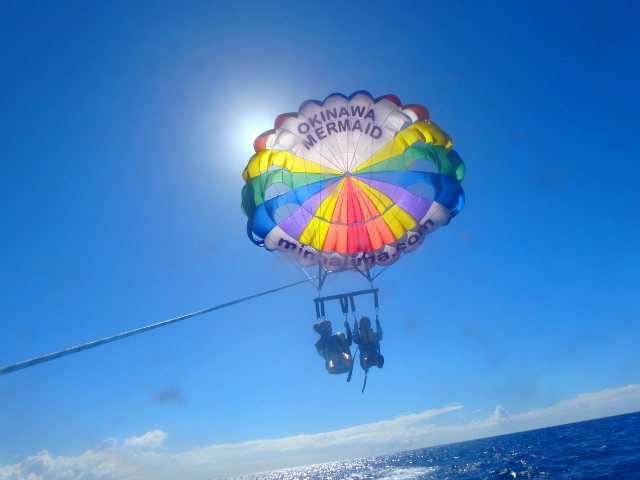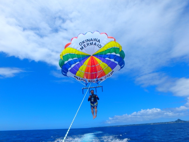 瀬底島沖で飛ばすので、水納島とはまた違った景色が楽しめます![]()