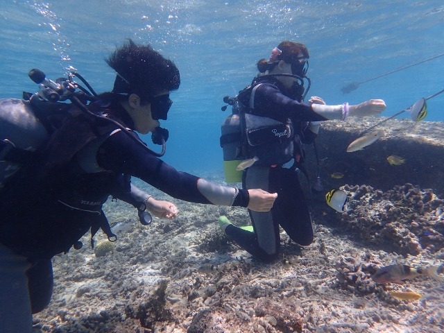 泳ぐの苦手でもシュノーケルや、ダイビングではインストラクターが皆さんを笑顔でサポートします💕