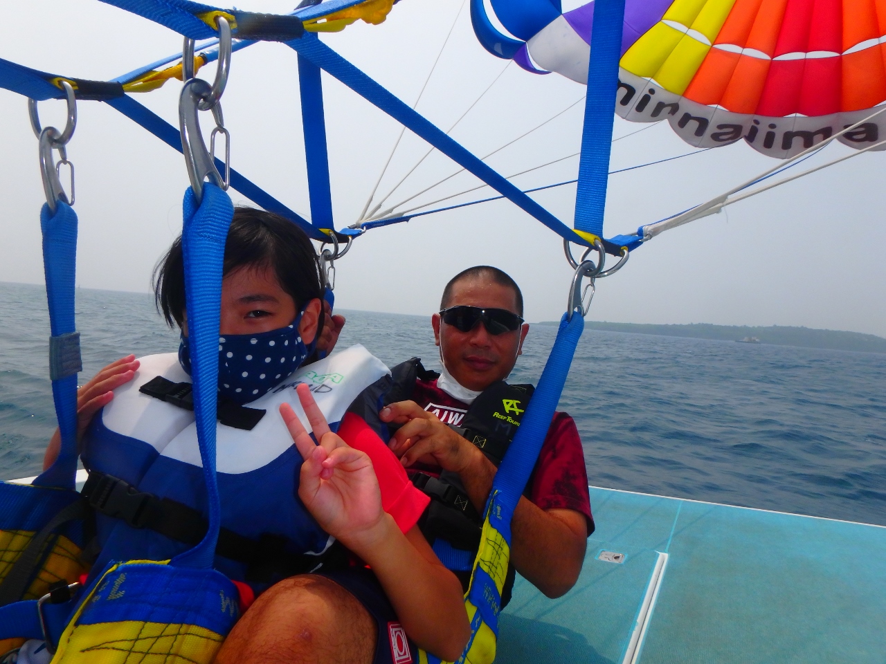 現在は残念ながら水納島へは行けませんが、次回は水納島でパラセーリングしましょう![]()