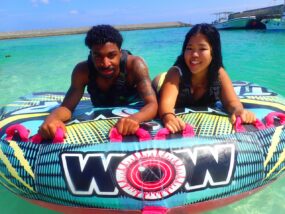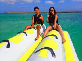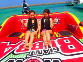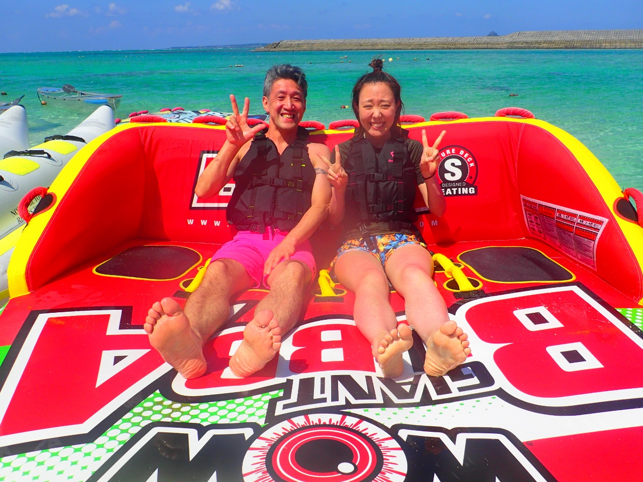 親子で楽しめるカヤックや、バナナボート。絶叫系のマリンスポーツ、マーブル、モンスターも大人気です。わ~!キャ~の声がいっぱい聞こえます![]()