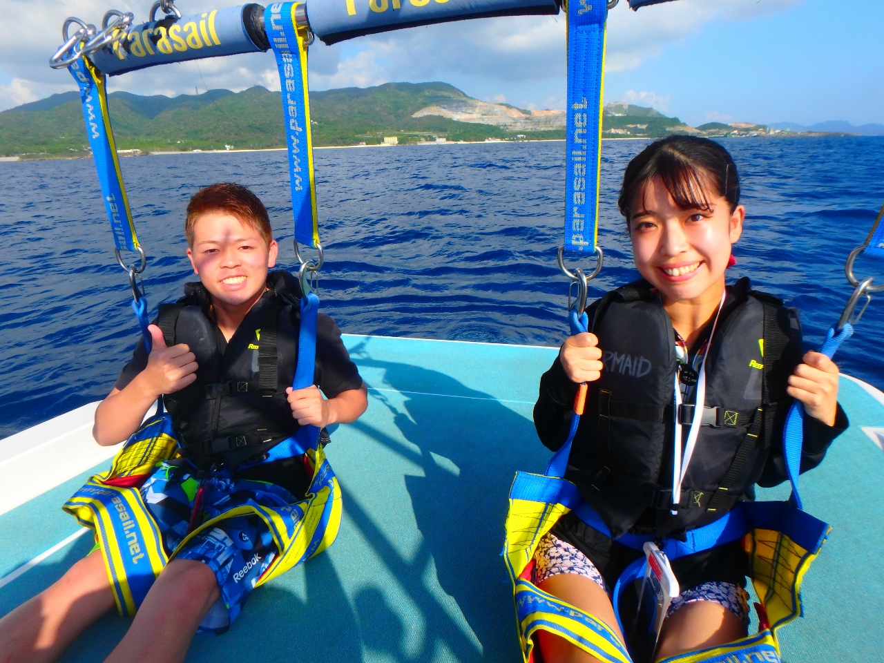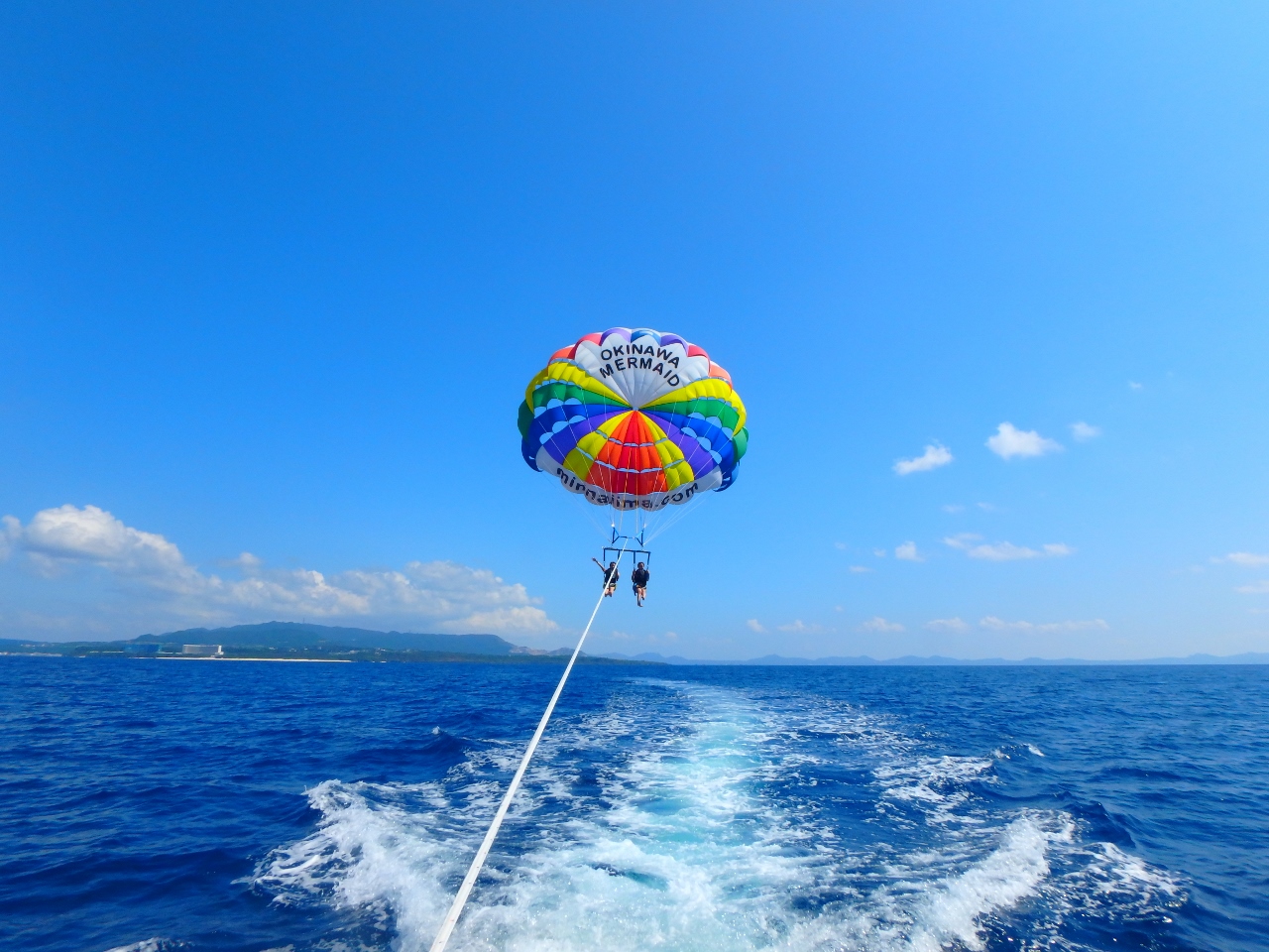 パラセーリングでは綺麗な海を水納島が一望できます![]()