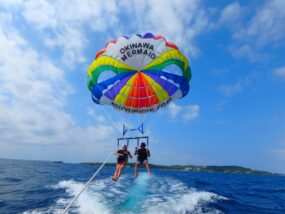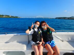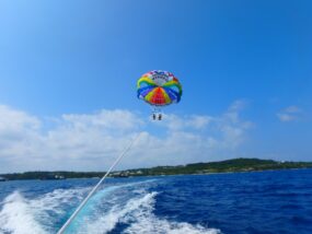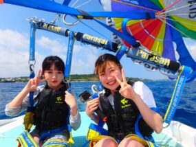 最近は水着で参加される方も多いので、船長の遊び心でパラセーリング中、海に足を浸けることも![]()