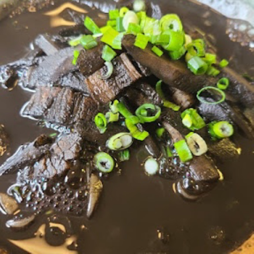 特徴的なのが沖縄そばの上にのせてある特大のあぐー豚![]()
