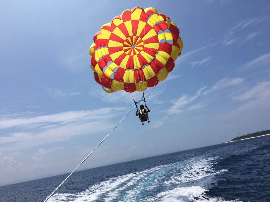 水納島パラセーリングは水納島を満喫しながらパラセーリングも出来るので大人気です。