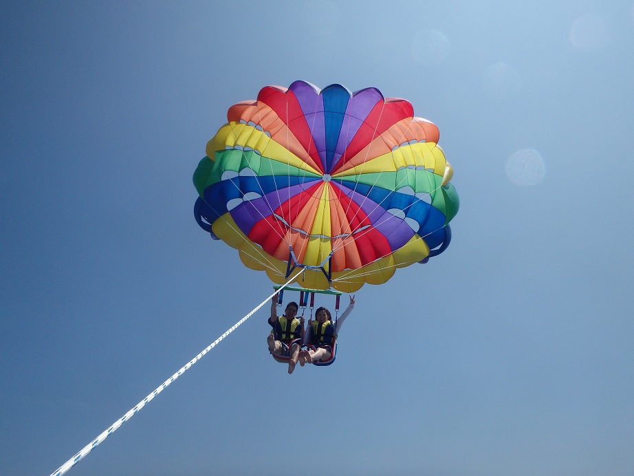中でもパラセールは気軽に空を飛べて、とってもお勧めですよ![]()
