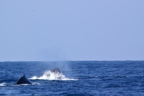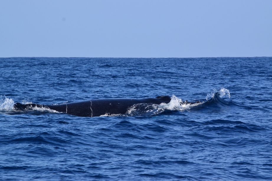 発見してすぐに、1頭のクジラが頭をあげてくれました![]()