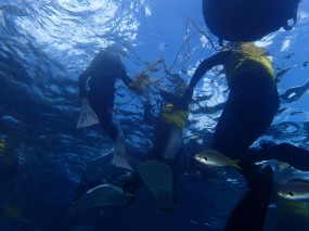 ここのお魚人に慣れていて餌をまくとすぐ近くまで寄ってきて食べてくれるので