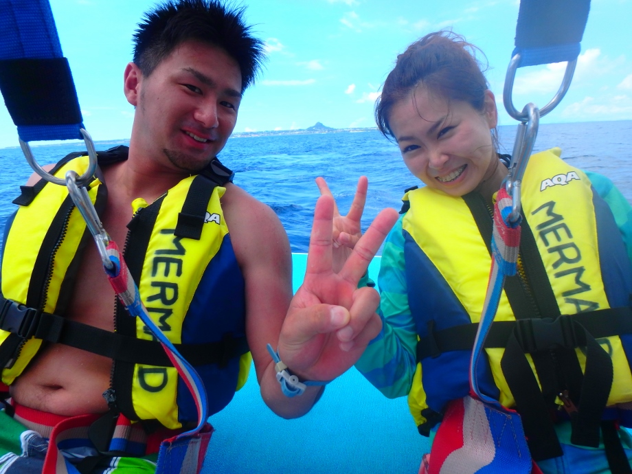 水納島に渡らなくても本島北部でもパラセーリングできちゃいます![]()