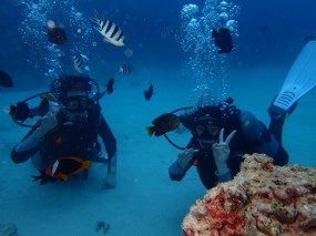 ダイビング初めてなのにお2人とも泳ぐの上手![]()