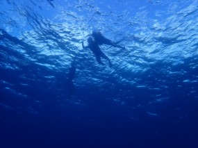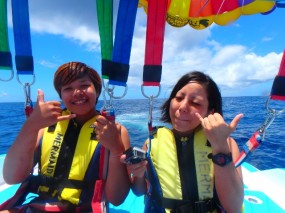 今日のパラセーリングのお客様、空の上からシュノーケルをしている人たちに