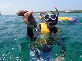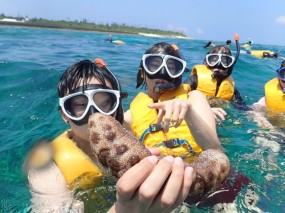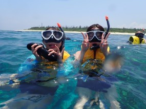 めちゃめちゃきれいなサンゴ礁の上を泳げるシュノーケリング![]()