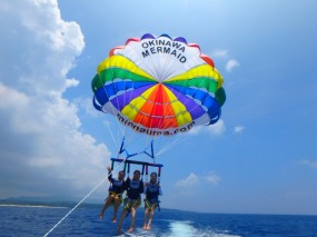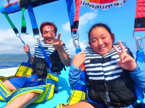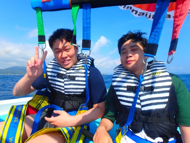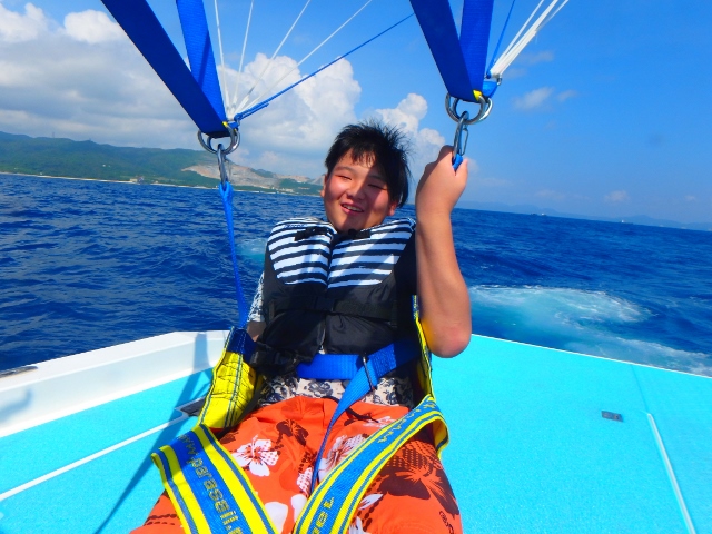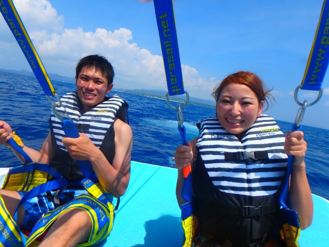 最初は怖がる人もいるんですけど、パラセーリングはホントに楽しいです![]()