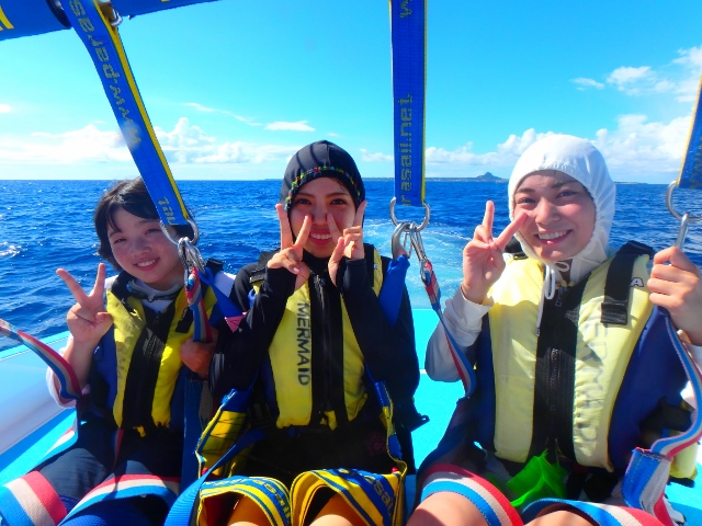 水納島でのパラセーリング体験、一度はしてみて下さい![]()