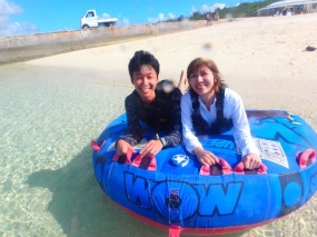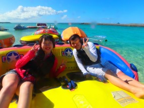 お子様も乗れるバナナボートやクリアカヤックもございますよ![]()