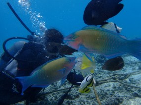 水納島の人懐っこいお魚たちが大歓迎してくれます![]()