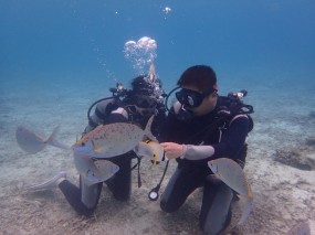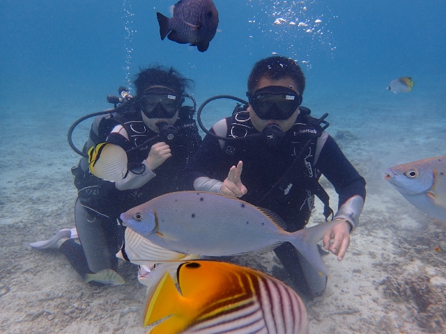 水納島でのダイビングはナマコやヒトデ、ハリセンボンなどに触れ合えて